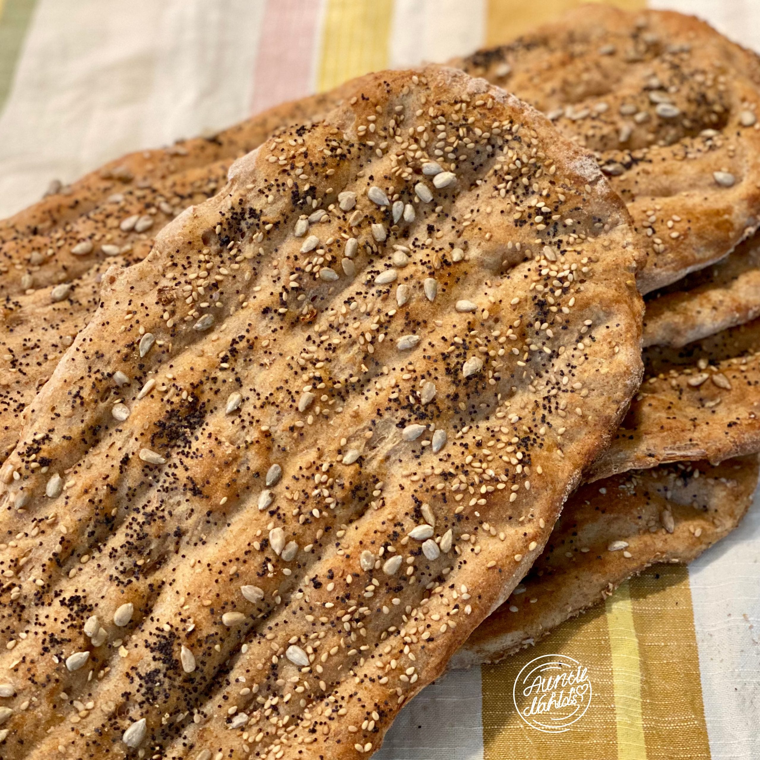 Ingredients: Wheat Flour, Eggs, Yogurt, Butter, Sugar, Milk, Vinegar, Salt, Sesame & Poppy Seeds